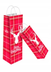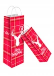 Sztywna CZERWONA TORBA świąteczna torebka na prezent butelkę RENIFER DUŻA