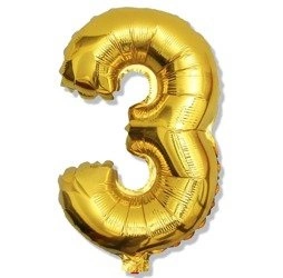 Balon foliowy URODZINY złoty 40cm cyferka 3 TRÓJKA