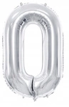 Balon SREBRNY foliowy CYFRA 0 na urodziny jubileusz rocznicę imprezę 100cm