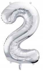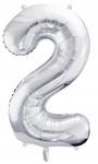 Balon SREBRNY foliowy CYFRA 2 na urodziny jubileusz rocznicę imprezę 100cm