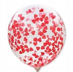 Balony KONFETTI CZERWONE SERCA przezroczyste 5szt