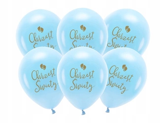 Ekologiczne Balony BŁĘKITNE na CHRZEST ŚWIĘTY Złoty napis STÓPKI 33cm 6szt
