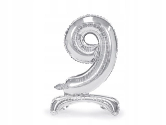 Stojący balon folia Cyfra 9 SREBRNY 90cm urodziny