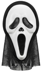 Maska Biało-Czarna Duch z Kapturem Strój Przebranie na Halloween 18x31cm