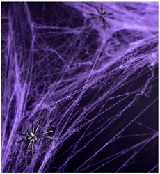Duża Pajęczyna Fioletowa Dwa Czarne Pająki Dekoracja na Halloween 60g