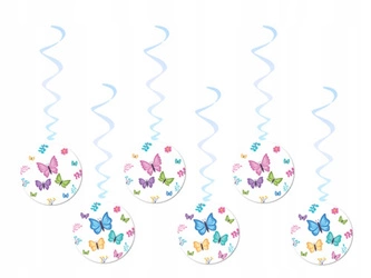 Świderki Wiszące Kolorowe Motylki Dekoracja na Roczek Urodziny Party 6szt