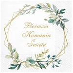 Serwetki białe PIERWSZA KOMUNIA ŚWIĘTA złoty nadruk GAŁĄZKI listki 20szt