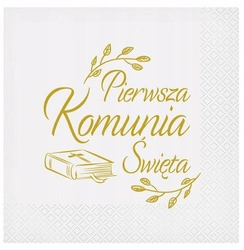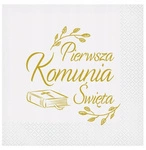 Serwetki białe PIERWSZA KOMUNIA ŚWIĘTA złoty nadruk BIBLIA IHS 33cm 20szt