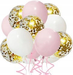Balony RÓŻOWE BIAŁE z konfetti ZŁOTE na ślub 15szt