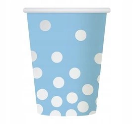 Kubeczki BŁĘKITNE papierowe w SREBRNE GROSZKI 6szt