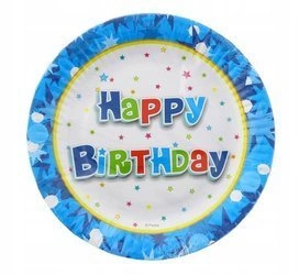 Talerzyki Happy Birthday niebieskie URODZINY 6szt