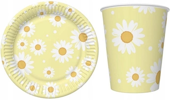 Zestaw Talerzyki Kubeczki Żółte Stokrotki Kwiatki na Urodziny Roczek 12szt