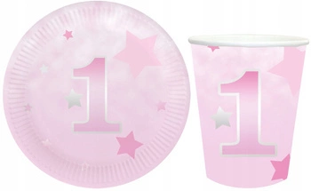Zestaw RÓŻOWY 1 ROCZEK Talerzyki Kubeczki 12szt