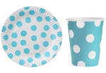 Zestaw NIEBIESKI w KROPKI Talerzyki Kubeczki 12szt
