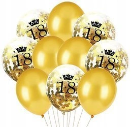 Balony ZŁOTE na 18 URODZINY foliowe konfetti 10szt