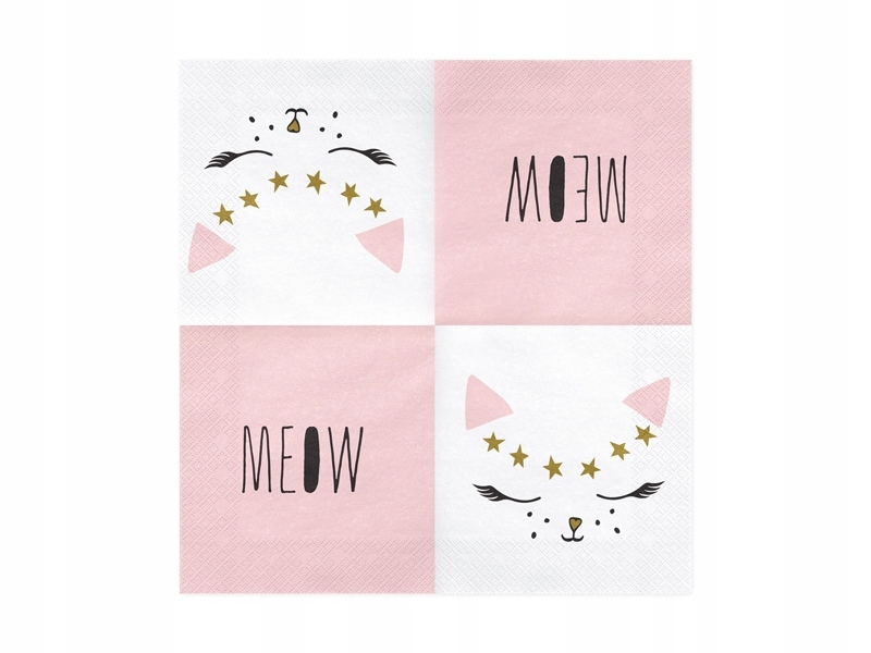 Serwetki BIAŁE papierowe KOTEK na urodziny 33x33cm