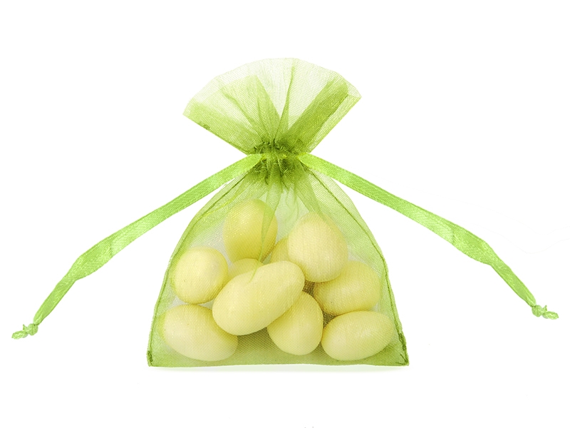 Ściągane woreczki z gładkiej organzy w kolorze zielonego jabłuszka