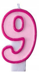 Świeczka urodzinowaCyferka 9 w kolorze różowymNiezbędna na każdym torcie!Idealna dekoracja tortu na urodzinach.Wysokość: około 7cmCena dotyczy 1 sztuki