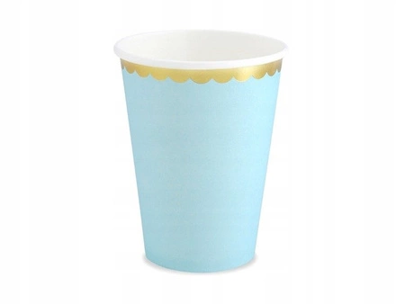 Kubeczki papierowe w kolorze jasnoniebieskim ze złotymi metalizowanymi brzegami