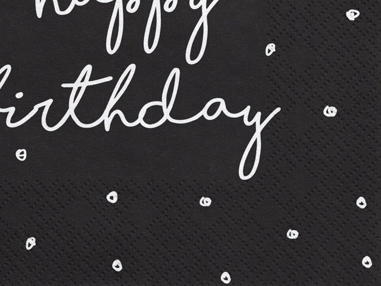 Serwetki trójwarstwowe Happy Birthday w kolorze czarnym z białym nadrukiem