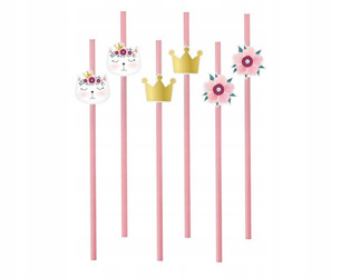 Słomki RÓŻOWE papierowe KOTEK Roczek urodziny 6szt