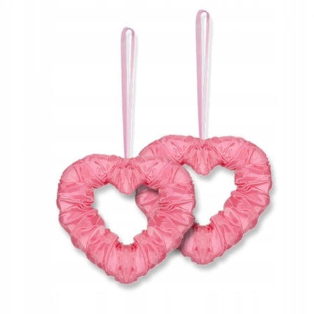 Klasyczne serduszka na tasiemce w różowym kolorze. Można je wykorzystać do dekoracji samochodu, stołu weselnego, ławek w kościele lub jako dekoracja pod sufitem na sali weselnej. Każde z serduszek ma długą wstążkę na której możemy je zawiesić.