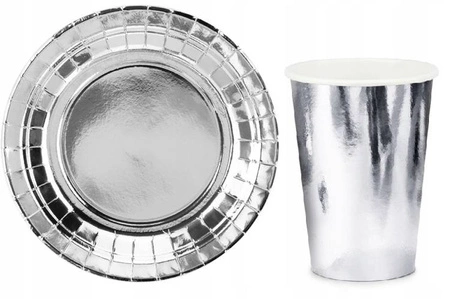 Zestaw talerzyków i kubeczków urodzinowych srebrny