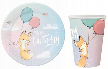 Zestaw LISEK Talerzyki Kubeczki na urodziny 12szt