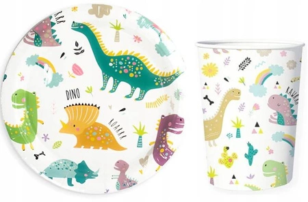 Zestaw talerzyków i kubeczków urodzinowych DINOZAURY