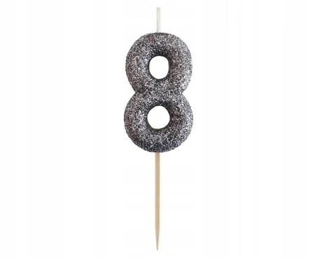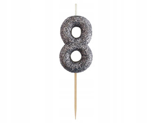 Świeczka piker cyferka 8 brokatowa czarna 11x3,5cm