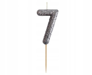 Świeczka piker cyferka 7 brokatowa czarna 11x3,5cm