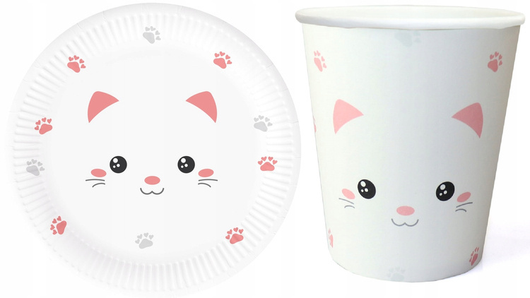 Zestaw talerzyków i kubeczków urodzinowych Kotek