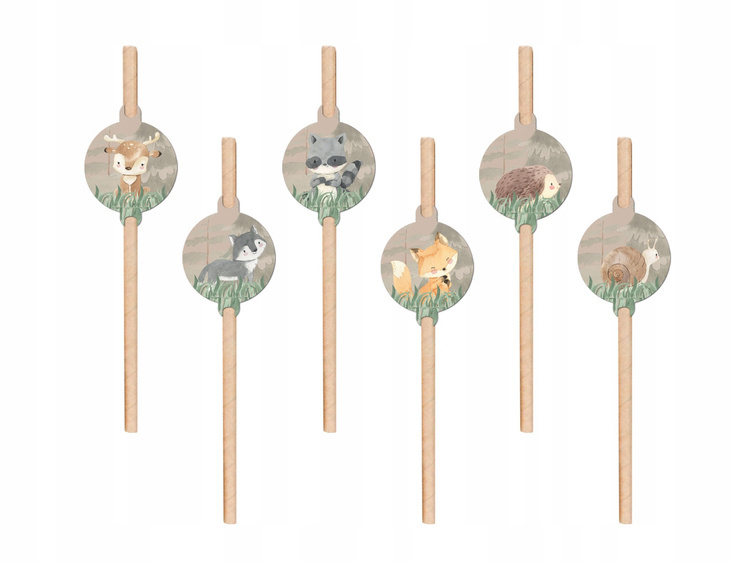 Urodzinowe słomki proste z zestawu Leśne Zwierzątka.