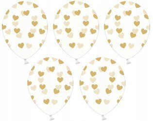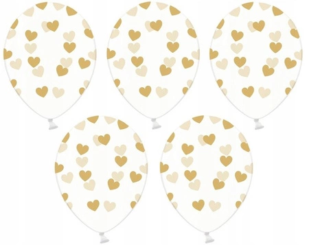 Balony Strong Serduszkaw kolorze Crystal Clear - przezroczyste,ze złotym nadrukiemrozmiar 14 cali - około 36 centymetrówCena dotyczy 5 sztuk