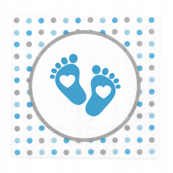 Serwetki STÓPKI NIEBIESKIE na roczek urodziny baby shower papierowe 10szt