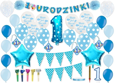 MEGA zestaw dekoracje na roczek 1 urodziny CHŁOPCA