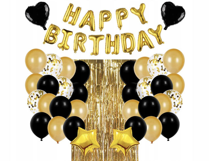 Girlanda balonowa w kolorze czarnym i złotym to idealna dekoracja na urodziny. Opakowanie: 49 szt.