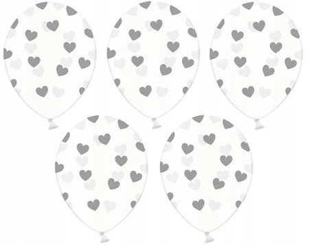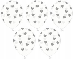 Balony Strong Serduszkaw kolorze Crystal Clear - przezroczyste,ze srebrnym nadrukiemrozmiar 14 cali - około 36 centymetrówCena dotyczy 5 sztuk