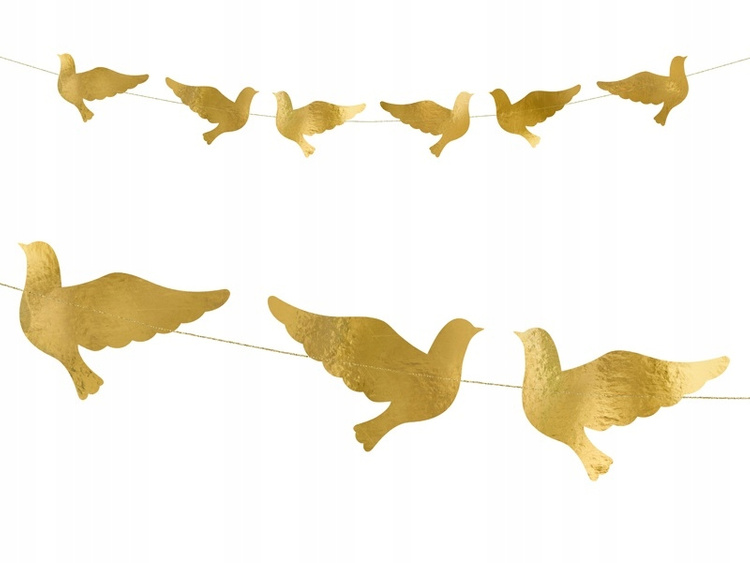 Przeszywana girlanda Gołębie wykonana z papieru w kolorze złotym lustrzanym.