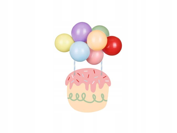 Kolorowy balonowy topper na tort to uroczy dodatek do dekoracji tortu na różnego rodzaju przyjęcia, jak urodziny, baby shower czy chrzciny.