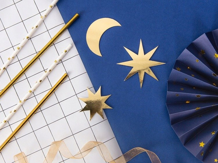Słomki papierowe ZŁOTE GWIAZDKI na roczek urodziny