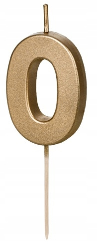 Świeczka urodzinowa w kształcie cyferki 0 w kolorze złotym to idealny dodatek do dekoracji tortu lub ciasta urodzinowego.