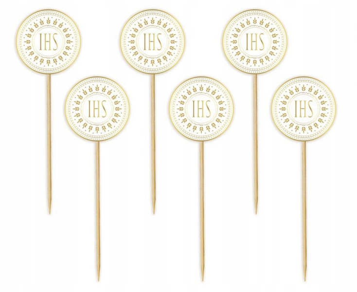 Pikery z motywem IHS to eleganckie dodatki, które dodadzą uroku i podkreślą charakter wyjątkowego wydarzenia, takiego jak Pierwsza Komunia Święta.