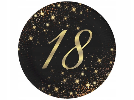 Papierowe talerzyki to praktyczne i eleganckie rozwiązanie na każdą okazję. Mają średnicę 18 cm i są wykonane z papieru, co czyni je łatwymi w utylizacji po użyciu. Talerzyki posiadają nadruk złotych gwiazdek i "18". W opakowaniu znajduje się 6 sztuk talerzyków, co wystarcza na niewielkie przyjęcie lub spotkanie rodzinne. Produkowane przez renomowaną firmę, zapewniają wysoką jakość i estetyczny wygląd, idealny na osiemnaste urodziny.