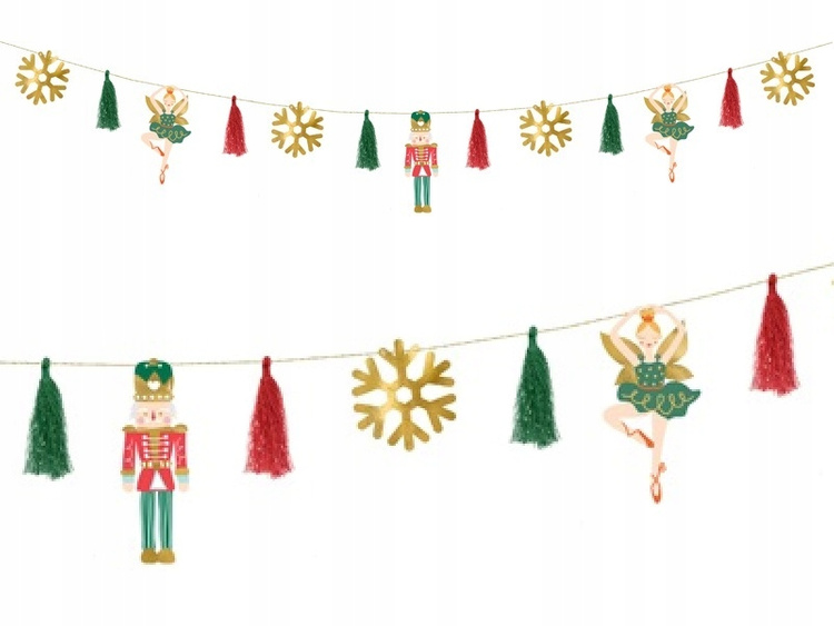 Papierowa girlanda „Dziadek do Orzechów” to elegancka dekoracja, która wprowadzi świąteczny klimat do każdego wnętrza.