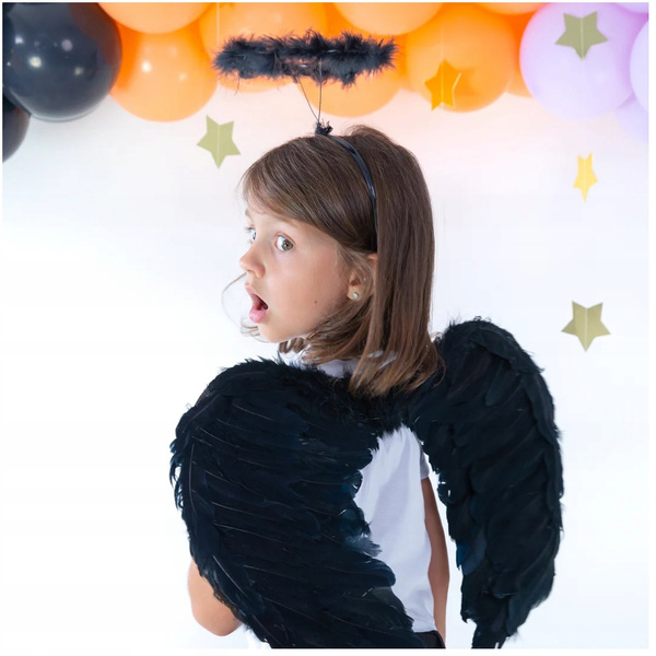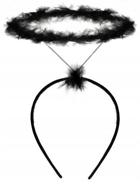 Opaska na głowę Aureola z piórek czarna to wyjątkowy dodatek, który doskonale uzupełni kostium anioła ciemności, diablicy lub inne kreatywne przebranie.