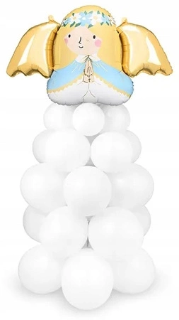 Ten bukiet balonów w kształcie anioła to idealna dekoracja na przyjęcia świąteczne, chrzciny, komunie lub jako dodatek do romantycznych uroczystości. Dzięki eleganckiej bieli i delikatnemu designowi, bukiet wprowadzi do Twojej przestrzeni magiczną atmosferę.