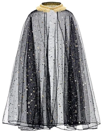 Ta peleryna w kolorze czarnym ze złotym wzorem to idealny dodatek na przyjęcia tematyczne, Halloween lub przedstawienia. Dzięki eleganckiemu designowi i wygodnemu kroju, peleryna wprowadzi do stylizacji odrobinę magii i tajemniczości.