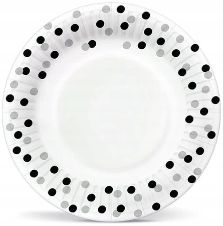 Talerzyki urodzinowe Konfetti srebrno-czarne to elegancka i stylowa propozycja na każdą uroczystość.