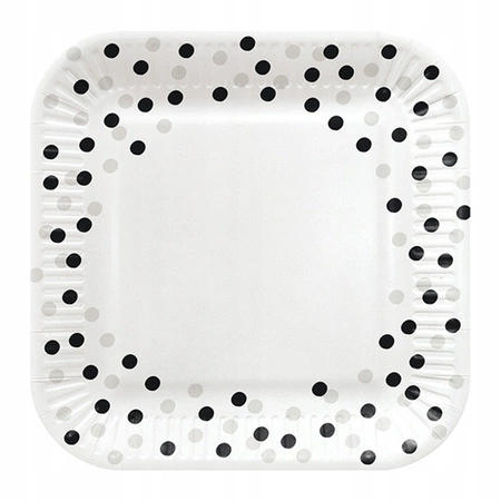 Kwadratowe talerzyki papierowe z motywem srebrno-czarnych konfetti to połączenie nowoczesnego stylu i elegancji, które doskonale sprawdzi się podczas różnego rodzaju przyjęć – od urodzin, przez sylwestra, aż po wieczory tematyczne czy bardziej formalne uroczystości.